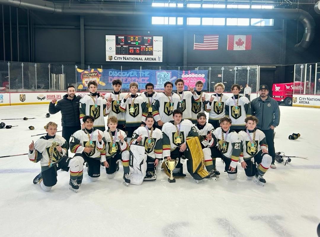 The Vegas Jr. Golden Knights 14U AA team defeated the Ogden Mustangs in the championship game of the Confetti Cup Series Halloween Bash. Securing a 4-2 victory versus coach Alec Artuso said, “The team had to face some adversity throughout the tournament, but ended up pulling it off and playing some of our best hockey down the stretch.” He continued, “It’s a great group of boys, the locker room has been fantastic extending all the way to the parent group with everyone getting along. We are approaching the season week-by week, game by game and doing a lot of good things”.